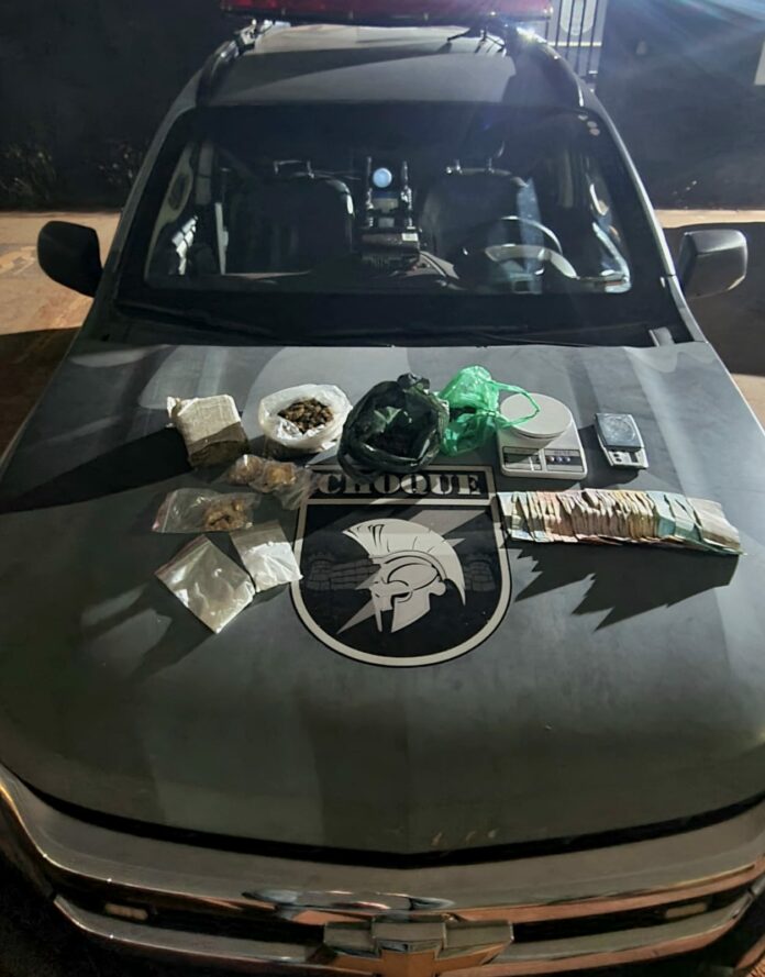 Ele também confessou que no quarto de sua casa estavam os apetrechos para pesagem e embalagem de drogas. No cômodo, foram apreendidos três porções de maconha e cinco porções de cocaína, sendo duas em forma de pó e três pasta base de cocaína.