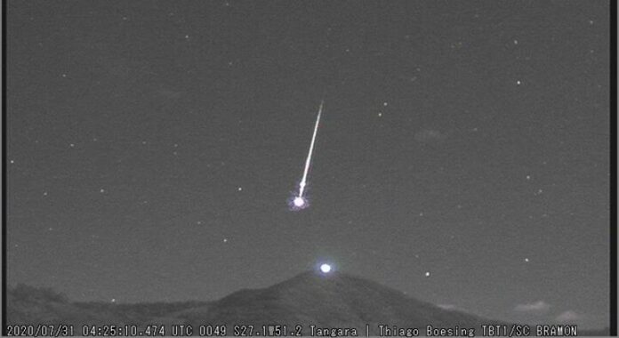 Registro de um meteoro explosivo oriundo da Alpha Capricorniids em 2020 (Foto: Thiago Soesing/Bramon)