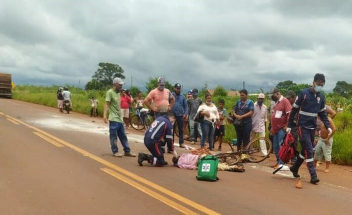 O condutor do caminhão relatou aos policiais que a vítima, aparentando ser indígena, adentrou a faixa de rolamento da via, realizando manobras em zigue zague com sua bicicleta, momento em que acabou colidindo com a lateral esquerda do caminhão.