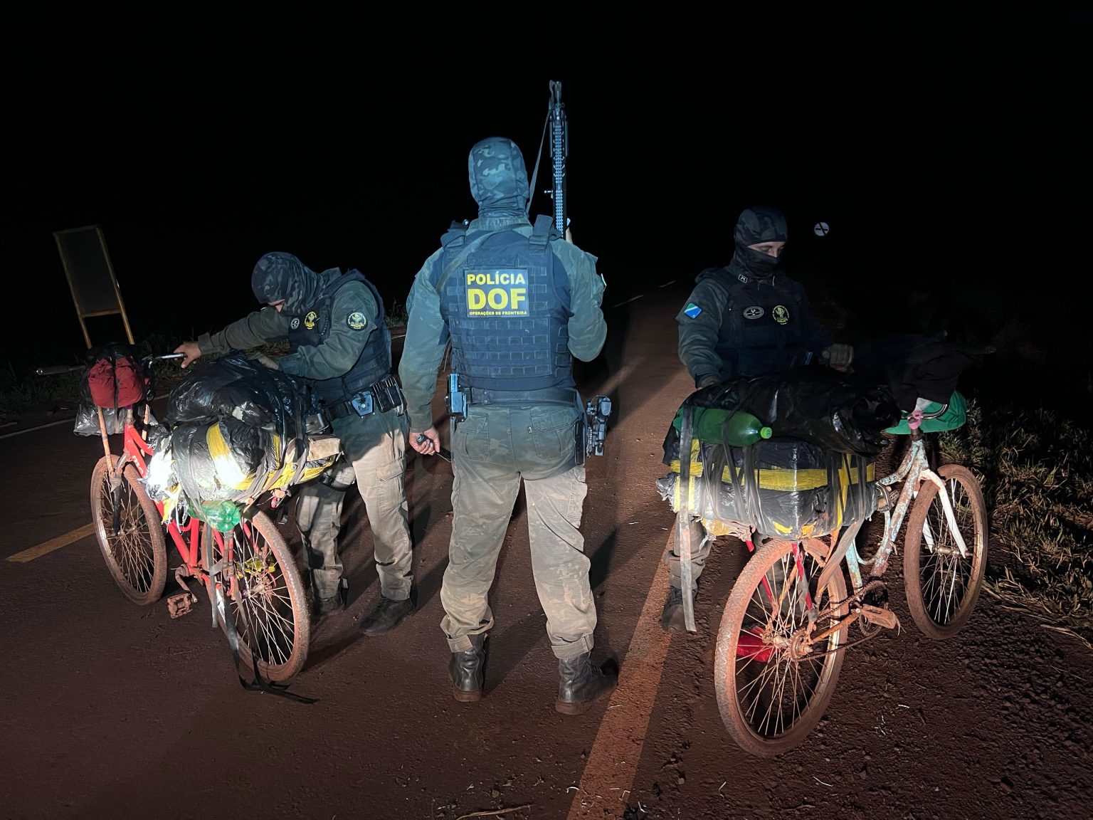 A equipe passava pela rodovia estadual MS-379 quando avistou dois ciclistas seguindo às margens da pista. Os homens, ao notarem a presença policial, correram a pé.