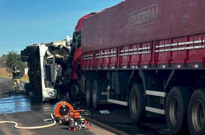 O site local Caarapó News indica que o acidente aconteceu 4 km para frente da Fazenda Santa Fé e envolveu duas carretas.