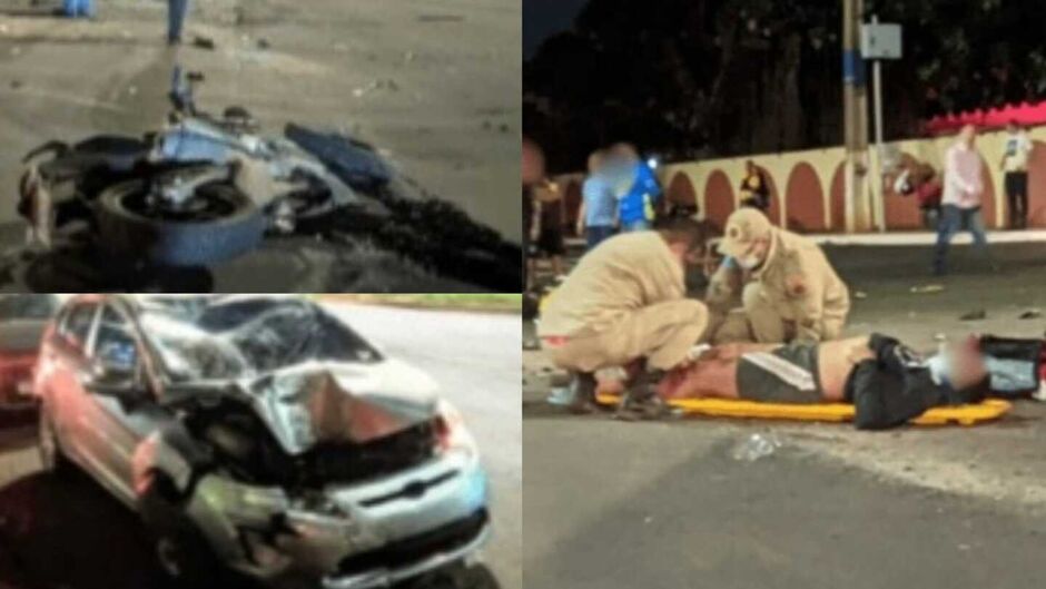 Duas pessoas ficaram feridas em um grave acidente na noite deste sábado (28), na Avenida Zulmira Borba, no bairro Nova Lima, em Campo Grande. A colisão envolveu um Ford Fiesta e uma motocicleta.