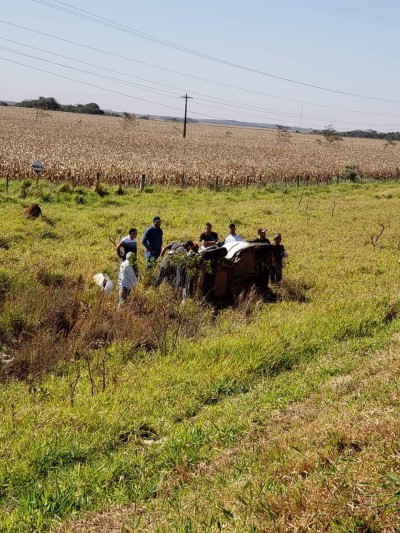 Com impacto da colisão, houve uma saída de pista da picape, seguido de capotamento.