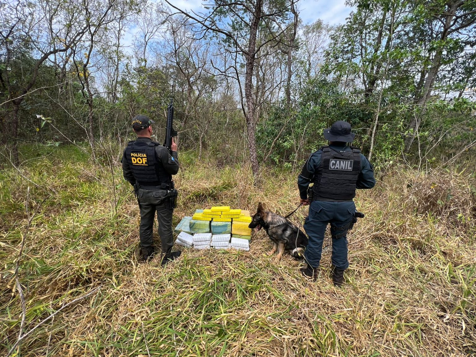 Com cão farejador, DOF e PM encontram 155 tabletes de maconha em matagal