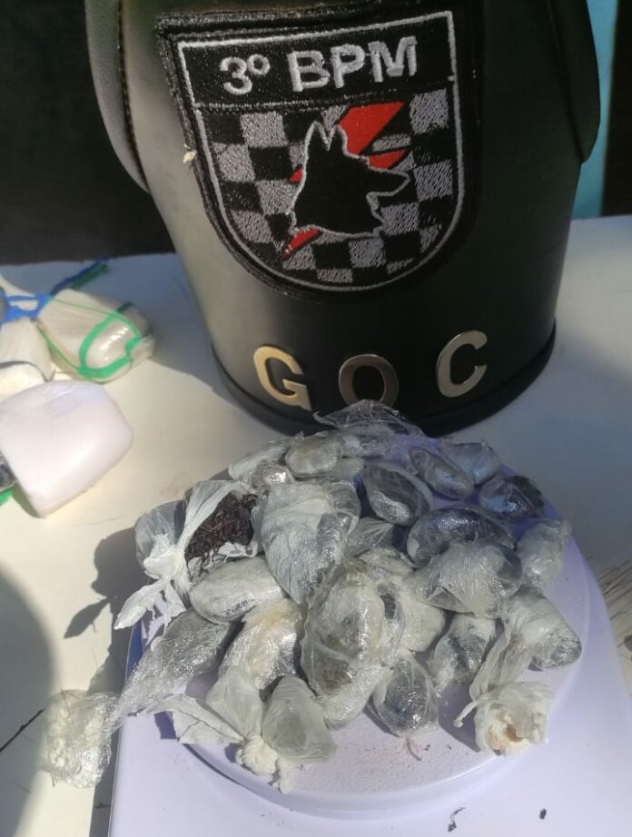Policiais militares apreenderam 46 papelotes de droga durante uma revista na Unidade Educacional de internação (UNEI) Laranja Doce, Dourados, durante a manhã desta quinta-feira (28). A ação contou com o apoio do canil do 3º Batalhão de Polícia.