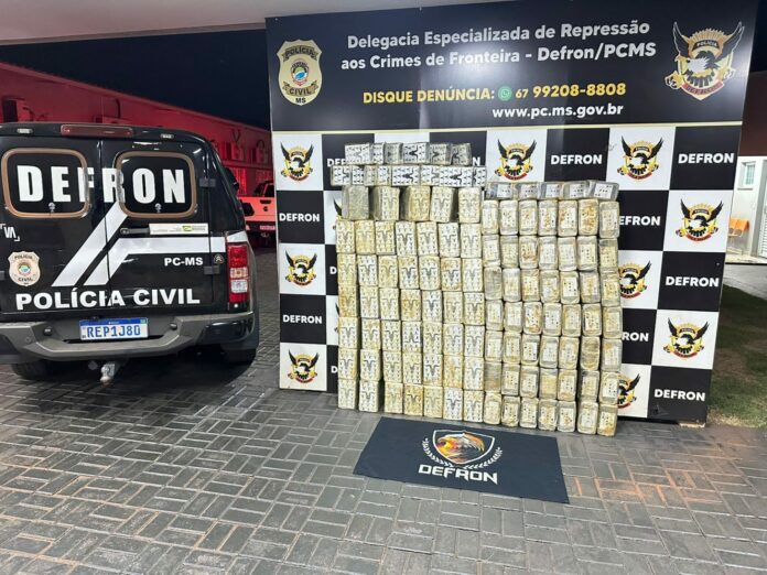 Meia tonelada de cocaína foi apreendida pela Delegacia Especializada de Repressão aos Crimes de Fronteira (DEFRON) na sexta-feira (04), em Ponta Porã, próximo da linha internacional de fronteira com o Paraguai.