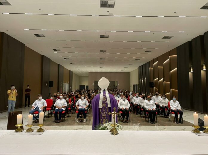 Cerca de 125 pessoas se reuniram para a Missa de Celebração do Natal, realizada no Shopping Bosque dos Ipês e celebrada pelo arcebispo Dom Dimas no foyer do espaço de eventos Bosque Expo, na noite do dia 22/12.