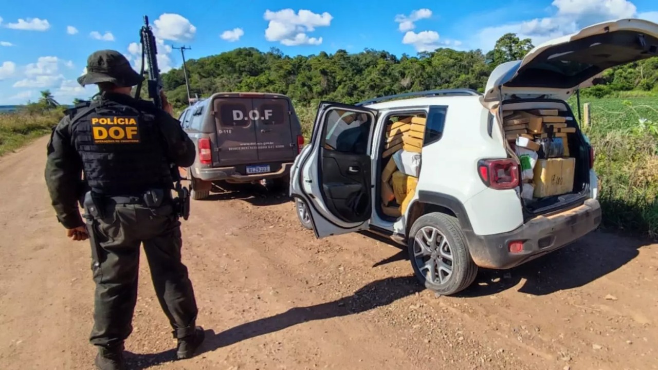 Conforme as informações. durante fiscalização os policiais deram a ordem de parada para o motorista de um veículo modelo Jeep Renegade que estava atravessando uma estrada vicinal usada pelo tráfico.