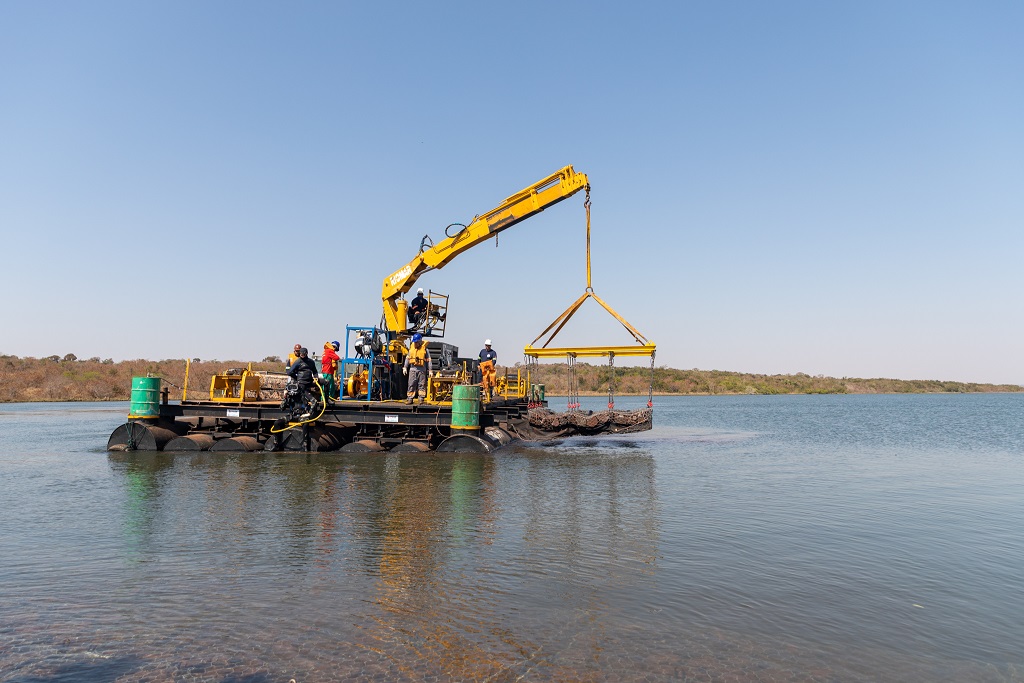 Com equipes de mergulhadores e balsa, são realizas melhorias operacionais na Captação Guariroba