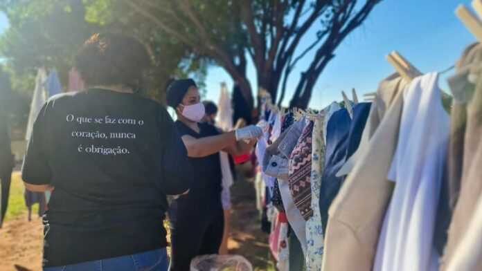 Para não causar aglomeração, os usuários recebiam senhas e aguardavam a entrada na área externa da unidade. Com a temperatura aferida e as mãos higienizadas com álcool, as famílias eram levadas até os varais e tinham cinco minutos para escolher as peças, que eram verificadas e contabilizadas pelos servidores do Cras, já que cada pessoa tinha direito a 15 unidades.