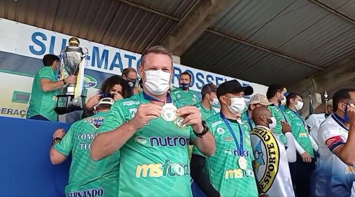 Técnico Ito Roque com medalha de campeão sul-mato-grossense de 2021 (Foto: CREC/Facebook)