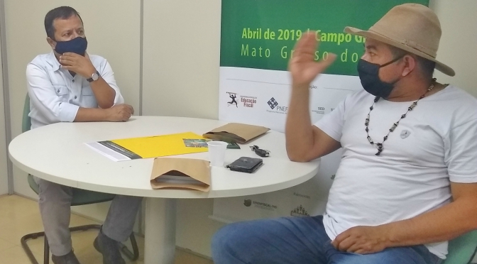 O cacique da comunidade indígena urbana Paravá, Silvio Fialho, traduziu para a língua Terena as informações sobre o Programa Nota MS Premiada, após reunião com o chefe da Unidade de Educação Fiscal da Secretaria de Estado de Fazenda, Amarildo Cruz.