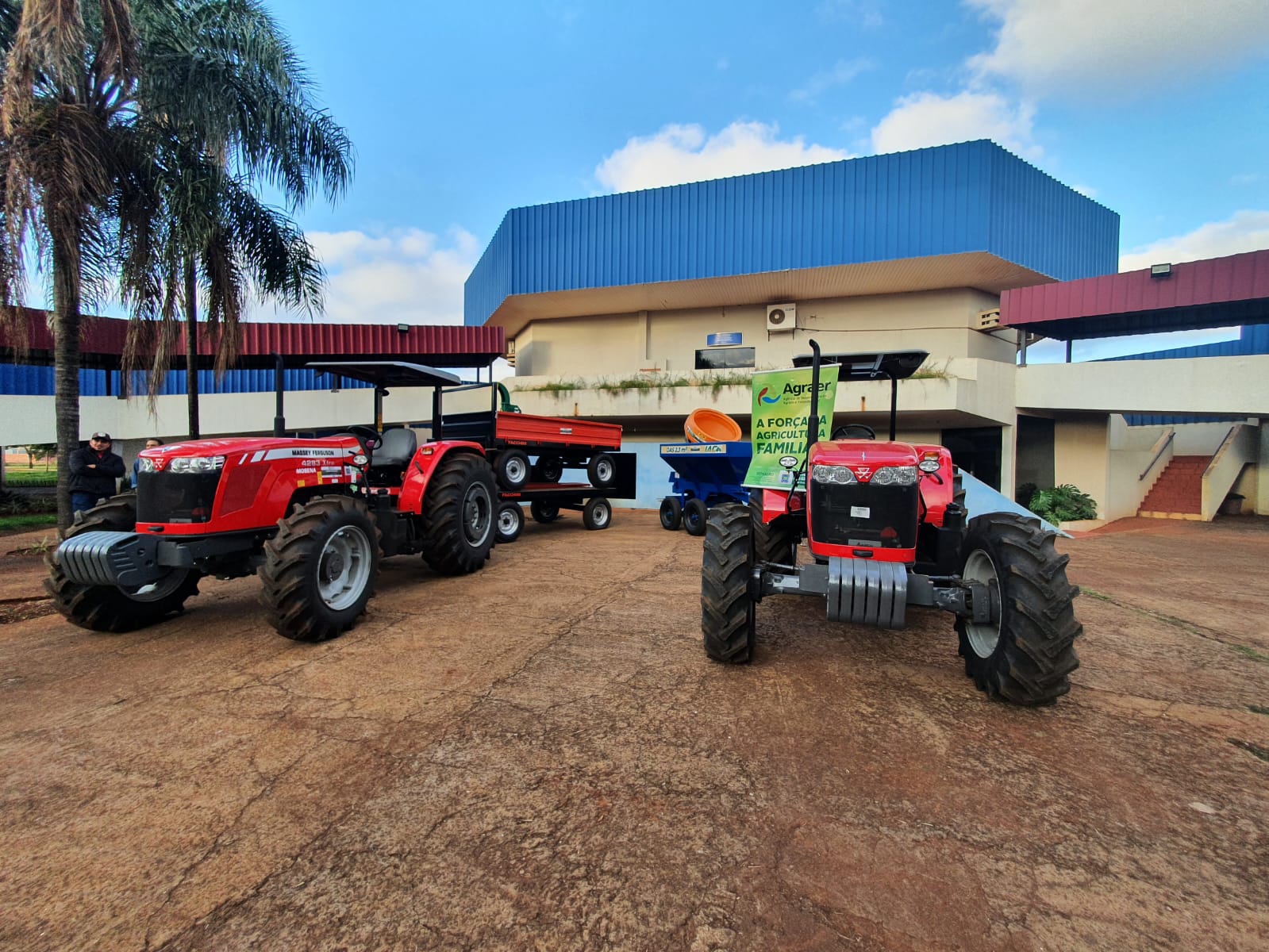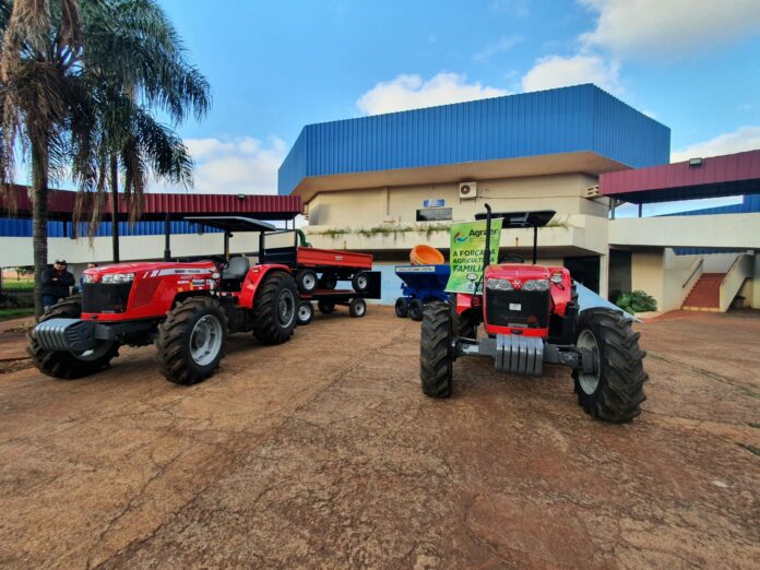 Foram entregues dois tratores 85 CV, duas carretas agrícolas, dois distribuidores de insumos e duas calcareadeiras.