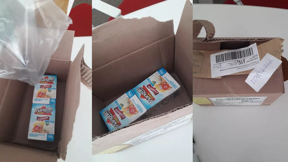 De acordo com ele, houve atraso na data prevista para a entrega, que só foi efetivada na última quarta-feira (20). Ao receber a caixa, o bancário imediatamente estranhou o peso por ser mais pesado do que o esperado. “Quando abri vi que eram duas caixas de creme de leite”, relatou.