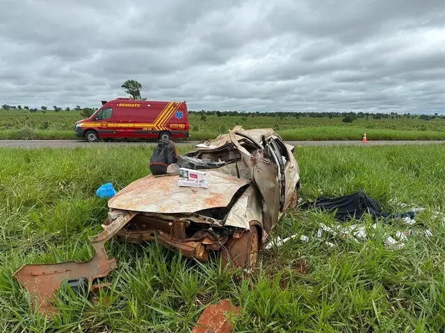 Conforme a ocorrência, o veículo que a vítima dirigia, modelo Fiat Siena, acabou capotando na pista e parando no meio da vegetação às margens, completamente destruído.