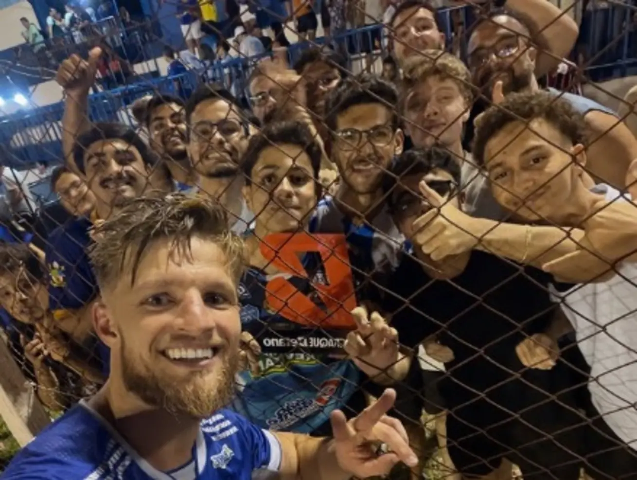 Diogo Fogliato, autor do gol, junto com a torcida (Foto: Instagram/Ivinhema FV)