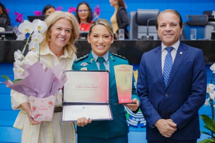 Em reconhecimento ao protagonismo feminino na gestão pública e à trajetória de excelência na segurança pública sul-mato-grossense, o deputado estadual Coronel David (PL) homenageou nesta terça-feira (10), a tenente-coronel da Polícia Militar, Gabriella Letícia Fernandes de Oliveira, com o Troféu Celina Jallad, durante as comemorações do Dia Internacional da Mulher na Alems (Assembleia Legislativa de Mato Grosso do Sul).