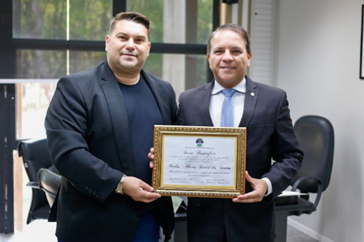 O presidente João Araújo também aproveitou a oportunidade para entregar uma placa de Sócio Honorífico ao parlamentar pelos seus serviços prestados à categoria dos corretores de Imóveis de Mato Grosso do Sul.