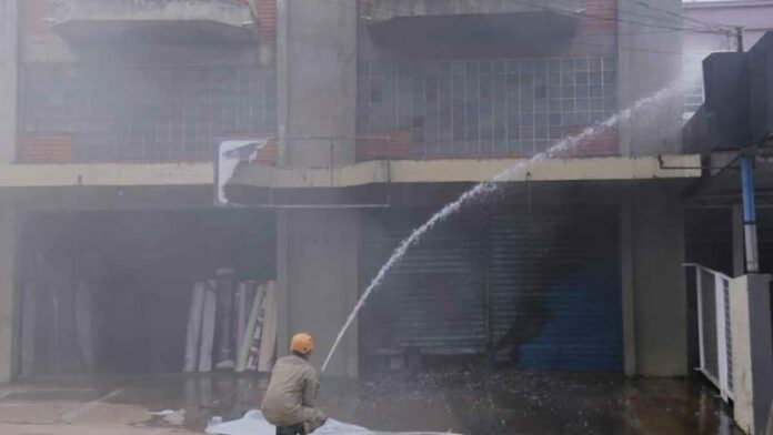 A chamas começaram por volta das 16h no comércio que fica na Rua Barão do Rio Branco esquina com Alan Cardec, próximo à antiga rodoviária, no Centro de Campo Grande. O fogo e fumaça tóxica de tecidos e produtos químicos, ameaçou hotel ao lado, que teve que ser evacuado.