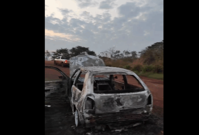 Segundo as informações, populares que passavam por uma estrada vicinal de acesso à rodovia federal BR-163, nos fundos do bairro Vila Fátima, viram o carro em chamas.