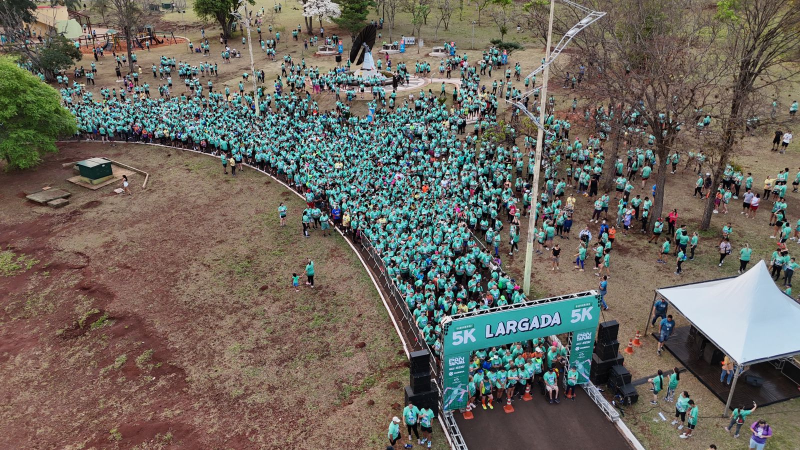 Do total de 25 mil inscritos no evento, quase 10 mil foram para participar da caminhada. A concentração preencheu com uma onda verde o parque mais arborizado da Capital. Para aquecer e animar os atletas, os instrutores do Sesi iniciaram a manhã com aquecimento. A largada foi dada pelo vice-presidente da Fiems, Crosara Júnior, e o diretor de Negócios da Rede Mato-grossense de Comunicação, Antônio Alves.