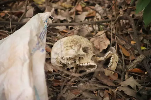 A Polícia Civil e a perícia foram acionados e recolheram o material, que agora passará pela análise do Instituto Médico e Odontológico Legal (IMOL) para ser identificado pela arcada dentária.