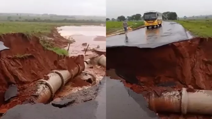 A rodovia estadual MS-180, no trecho que dá acesso ao município de Iguatemi, está interditado por completo devido a abertura de uma cratera gigantesca que destríu a pista.
