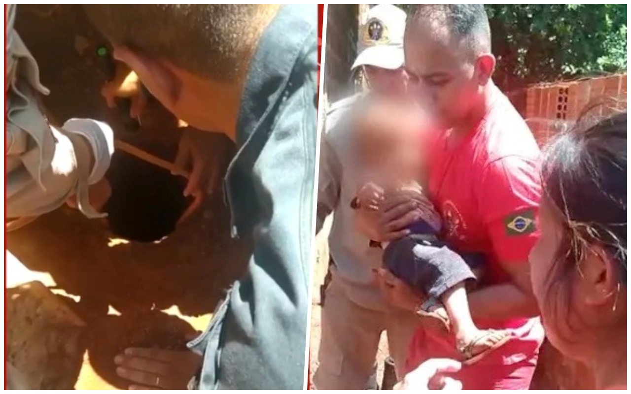 Por sorte, a vítima não sofreu sequer um arranhão, mas estava suja e muito assustada com toda a movimentação. De acordo com a família, o menino estava brincando no quintal quando caiu no buraco.