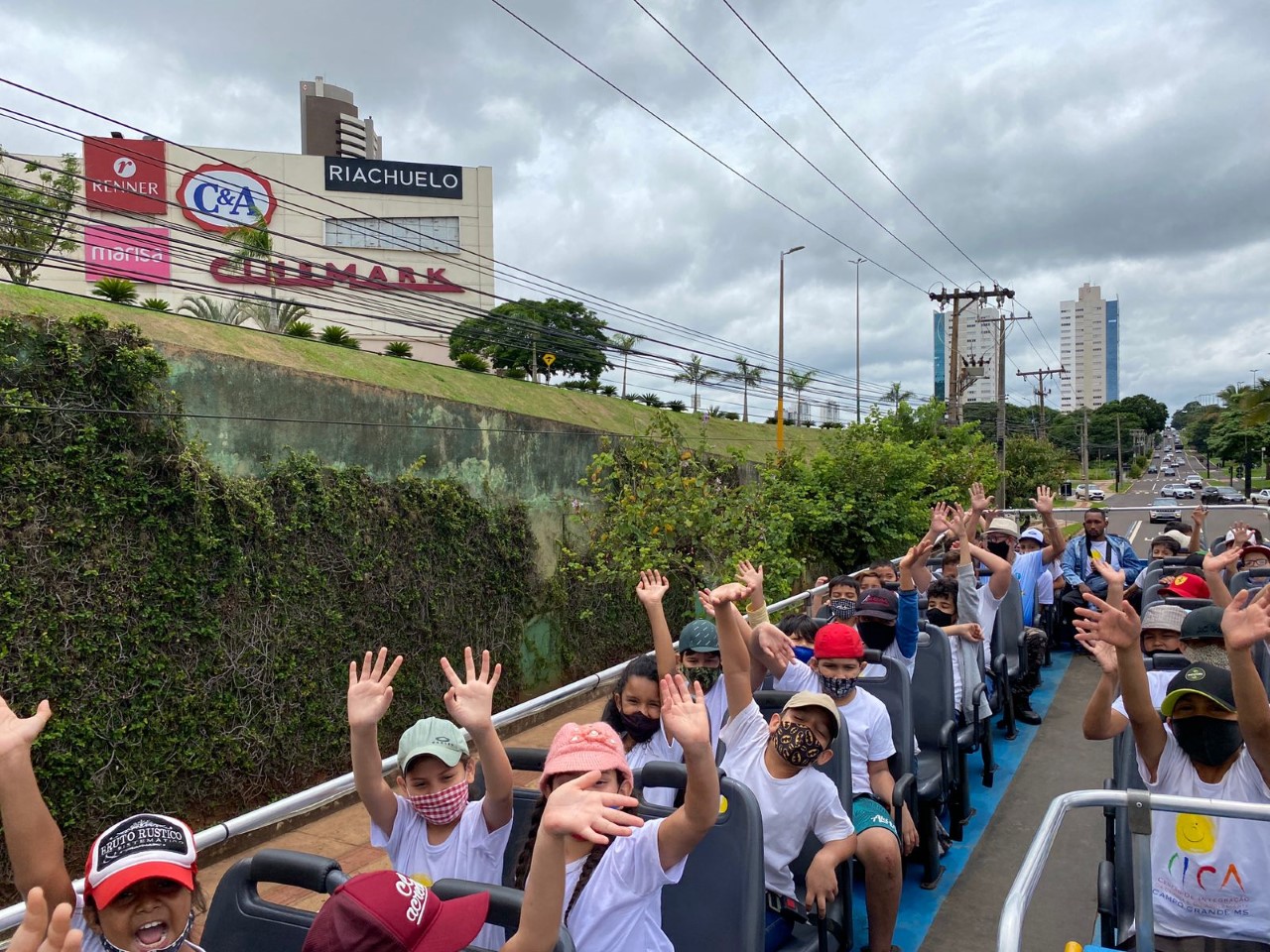 Um grupo de 50 crianças participou, pela primeira vez na vida, de uma sessão especial em um cinema de shopping de Campo Grande nesta quinta-feira (11). As crianças são atendidas pelo Centro de Integração da Criança e do Adolescente (CICA) e a ação faz parte do projeto City Tour Descubra Campo Grande, realizado pela Prefeitura Municipal, por meio da Secretaria de Cultura e Turismo (Sectur) e do Fundo de Apoio à Comunidade (FAC). Elas percorreram a cidade e desembarcaram no shopping para um dia especial de aventuras.