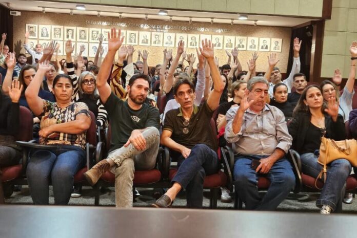 A assembleia aprovou apenas o estado de greve por enquanto, mas deixou aberto um calendário de possíveis radicalizações: paralisação de um dia, greve por tempo indeterminado ou interrupção parcial dos serviços.