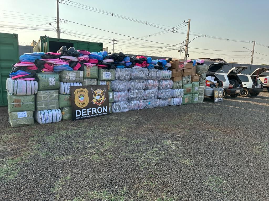 Policiais da Delegacia de Repressão aos Crimes de Fronteira (DEFRON) apreenderam na última quarta-feira (23) um grande carregamento de produtos contrabandeados que estava sendo transportado por um comboio formado por três veículos.