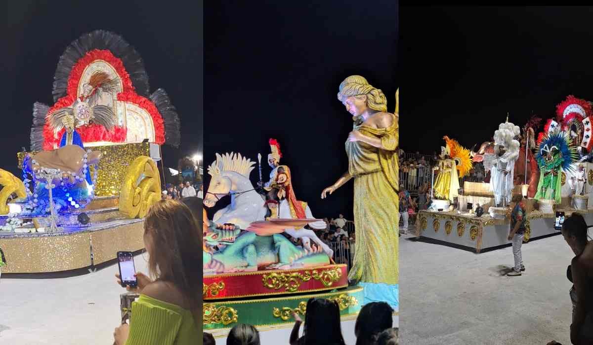 Ao todo, 500 pessoas desfilaram pela escola neste ano, que investiu alto, aproximadamente R$ 400 mil. Entre os destaques estão os carros alegóricos de São Jorge, com o cavalo e o dragão, e o de Nossa Senhora Aparecida. Outro ponto alto foi a ala de São Cosme e Damião, com os sambistas representando os sacos de doces e balas.