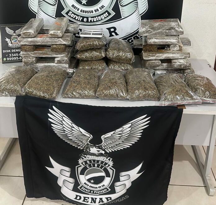 Na residência dele, foram apreendidas mais 36 porções de maconha, dentre tabletes e “buchas”, que estavam dentro de uma caixa e de um saco de lixo no quarto do suspeito, junto a uma balança de precisão.
