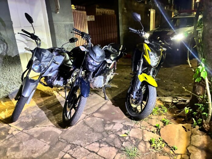 Uma denúncia de movimentação suspeita terminou com a apreensão de três motocicletas furtadas, munições e dinheiro em espécie na noite de quarta-feira (14), na vila Nhanhá, em Campo Grande. A ocorrência foi atendida por equipes do 10º Batalhão da Polícia Militar e resultou no encaminhamento de um casal à delegacia por porte ilegal de munição e furto qualificado.