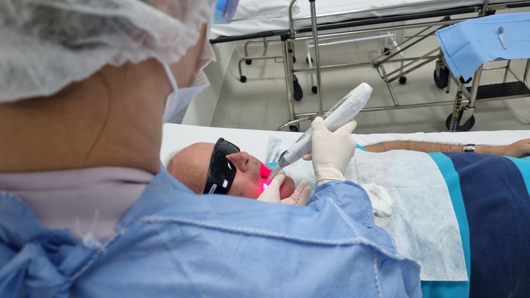 O cirurgião-dentista Eduardo Scardua, também do Hucam, explicou que eles atuam na identificação e eliminação de focos infecciosos orais previamente a cirurgias cardíacas, quimioterapia ou radioterapia e transplante; na prevenção da pneumonia associada à ventilação; no tratamento de dor de origem bucal; na identificação, diagnóstico e tratamento de lesões orais; naprevenção e tratamento de mucosite por meio de laserterapia; nas adaptações de prótese para progressão da consistência da dieta, entre outros. O paciente oncológico Fernando Caoduro, por exemplo, recebe este cuidado no Hospital Dia do Hucam, com aplicação de laserterapia para prevenção de mucosite. “Eu não conseguia comer direito e graças a este tratamento estou me sentindo bem melhor”, afirmou.
