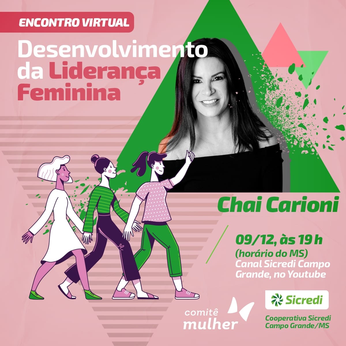 No dia 9 de dezembro, às 19h, no canal do Youtube da Sicredi Campo Grande ocorrerá a palestra “Desenvolvimento da Liderança Feminina”, com Chai Carioni, que é empresária da área de desenvolvimento humano.