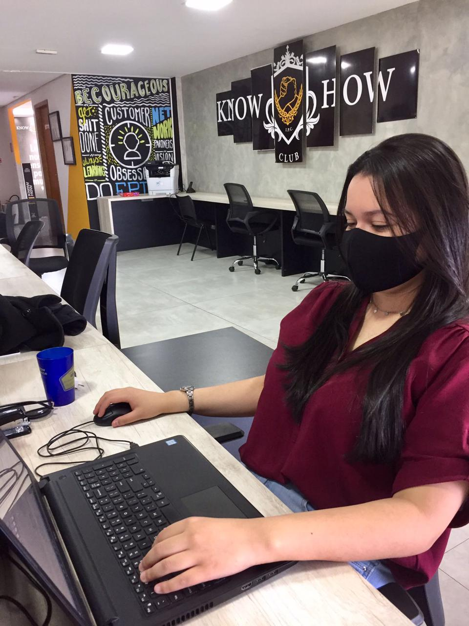 Sofhie Emanuelly da Silva Rodrigues tem 17 anos e está no terceiro ano do ensino médio. Pela primeira vez, está estagiando numa clínica odontológica, auxiliando e aprendendo na área administrativa.