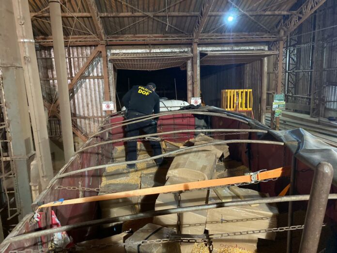 Após milho descarregado, os policiais contabilizaram 17.340 quilos do entorpecente. O DOF avaliou o prejuízo para criminalidade em R$ 26.010.000,00.