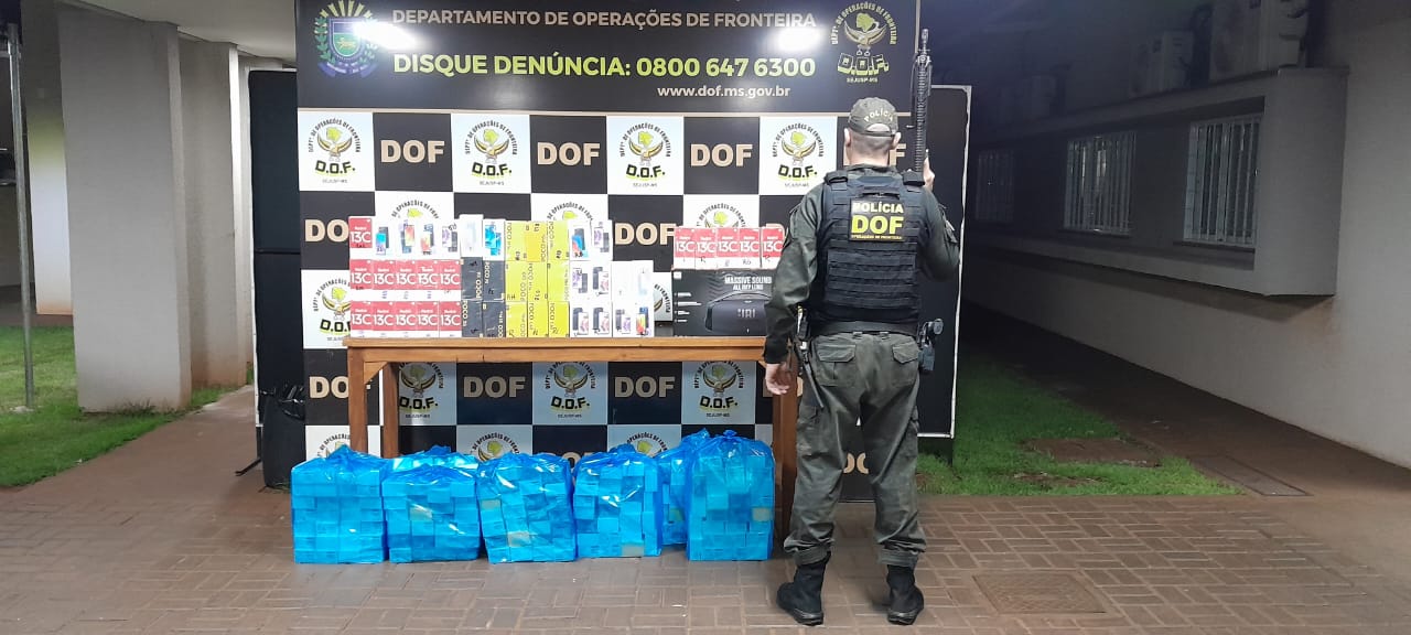 Um carregamento de cigarros e diversos produtos eletrônicos contrabandeados do Paraguai foi apreendido pelo Departamento de Operações de Fronteira (DOF) na madrugada do último sábaado (13), em Itaporã.