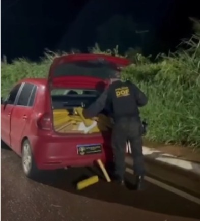 O flagrante ocorreu na rodovia estadual MS-164. A equipe estava em patrulhamento quando avistou um veículo, modelo VW Fox, em atitude suspeita.
