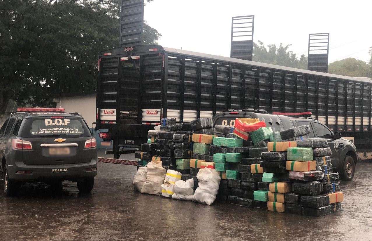 Os homens do DOF realizavam ações da Operação Hórus na MS-289, quando deram ordem de parada ao condutor de um caminhão boiadeiro, de 37 anos, que alegou ter ido a Coronel Sapucaia para transportar três cavalos. Durante vistorias ao veículo, os policiais encontraram grande quantidade de drogas escondidas sob uma camada de capim.