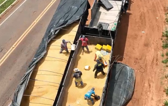 Droga estava escondida entre grãos de milho e teria destino ao Rio Grande do Sul; prejuízo estimado em R$ 12,2 milhões.