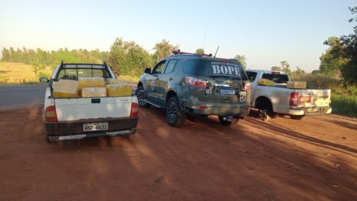 O DOF- MS (Departamento de Operações de Fronteira) agiu no fim da madrugada desta terça-feira (6) contra o tráfico de drogas e por desobediência prendeu dois indivíduos na rodovia MS 295, que fica em Tacuru/MS. Os agentes encontraram pouco mais de 1,2 tonelada de drogas em duas camionete S-10 e Strada, que forma apreendidas. Conforme avaliação policial o ‘prejuízo ao crime’ foi de R$ 1,6 milhão.