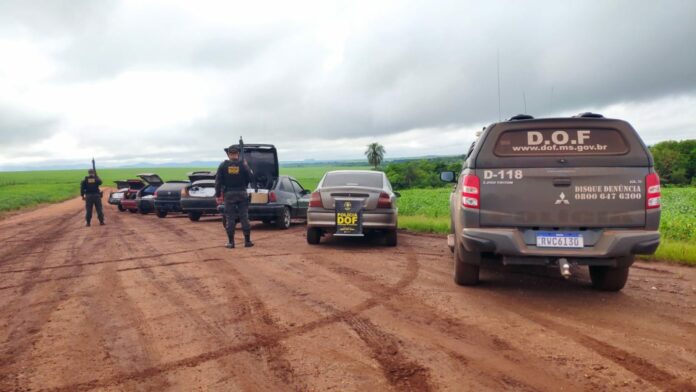 Conforme o registro, a equipe promovia um bloqueio na rodovia estadual MS-164 quando deu a ordem de parada aos condutores de seis veículos, que seguiam em comboio.