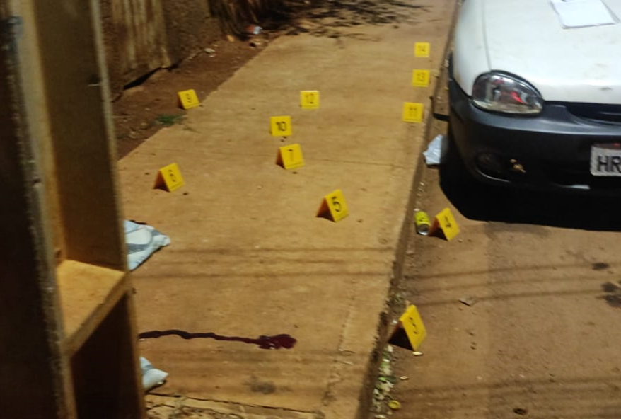 Thiago caiu já em vida lado de um veículo Corsa que estava estacionado. No local os peritos encontraram 27 cápsulas deflagradas, três projéteis, uma munição intacta e o celular da vítima, danificado pelos disparos.