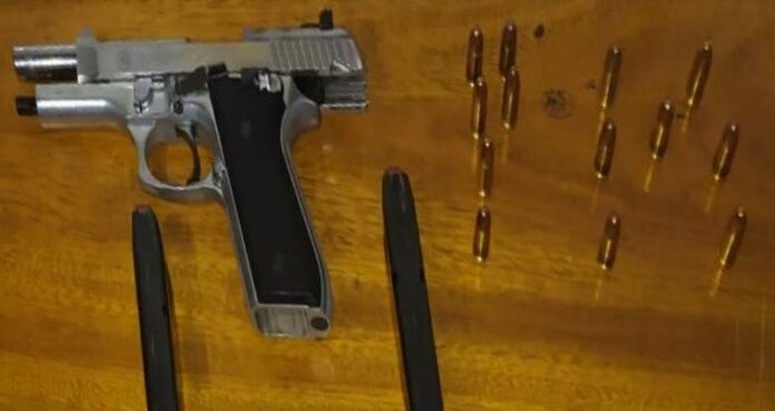 A equipe da Polícia Militar de Tacuru apreendeu uma pistola usada por dois jovens que realizavam disparos em via pública, na noite de ontem (25).