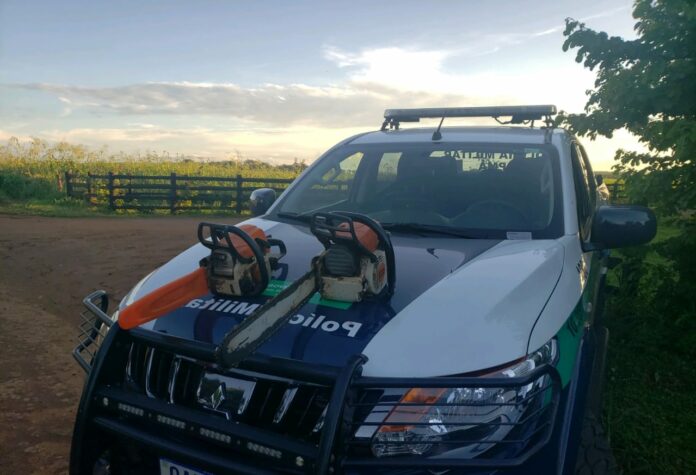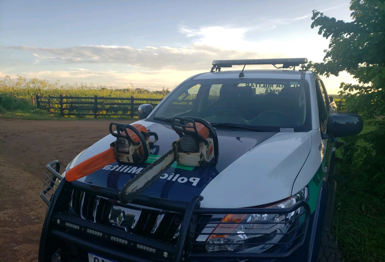 O primeiro estava em um veículo L 200 Triton e outro em um veículo Fiat Uno e cada um transportava uma motosserra sem a Licença de Porte e Uso (LPU).