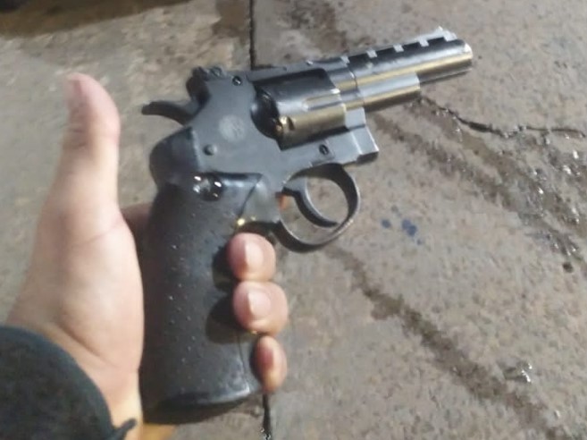 O primeiro a ser preso, foi o rapaz de 21 anos, encontrado na Rua Antonio Maria Coelho, na Vila Planalto. Com ele, os policiais militares localizaram um simulacro de arma de fogo, tipo revólver, com seis munições de chumbinho.