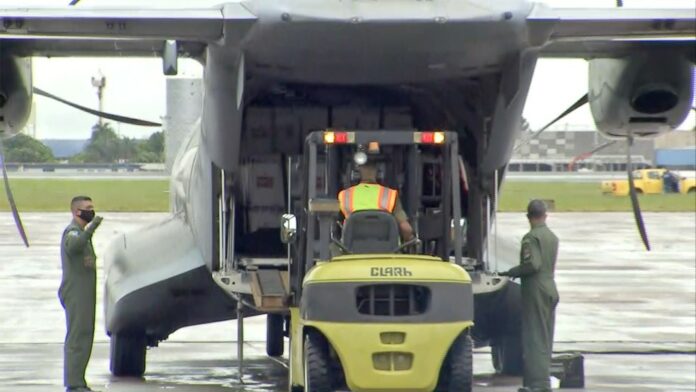Às 15h15 desta segunda-feira (18), cerca de 158 mil doses da vacina chinesa contra a covid-19, a CoronaVac, chegaram em Campo Grande. Um avião da Força Aérea Brasileira (FAB) foi responsável pelo transporte e pousou na Base Aérea. Esta primeira entrega será destinada a 97 mil indígenas aldeadas e 61 mil aos profissionais de saúde da linha de frente de combate à Covid-19 e aos idosos em asilos.