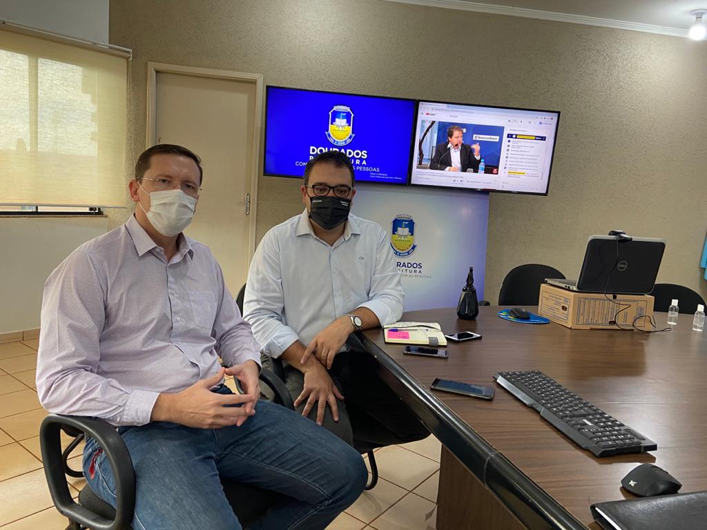 O prefeito de Dourados, Alan Guedes, participou na manhã desta segunda-feira (1) de uma videoconferência, na sede da prefeitura, para o lançamento do Cidade Empreendedora, projeto de iniciativa do Sebrae, que integra gestão pública e pequenos negócios em um ambiente de oportunidades, para estimular a economia local e desenvolver os municípios.